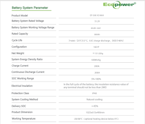 - Dung lượng cực khủng: Với năng lượng lên đến 15.36kWh, pin đáp ứng nhu cầu sử dụng điện cường độ cao cho các hộ gia đình lớn, trang trại, hoặc doanh nghiệp nhỏ.