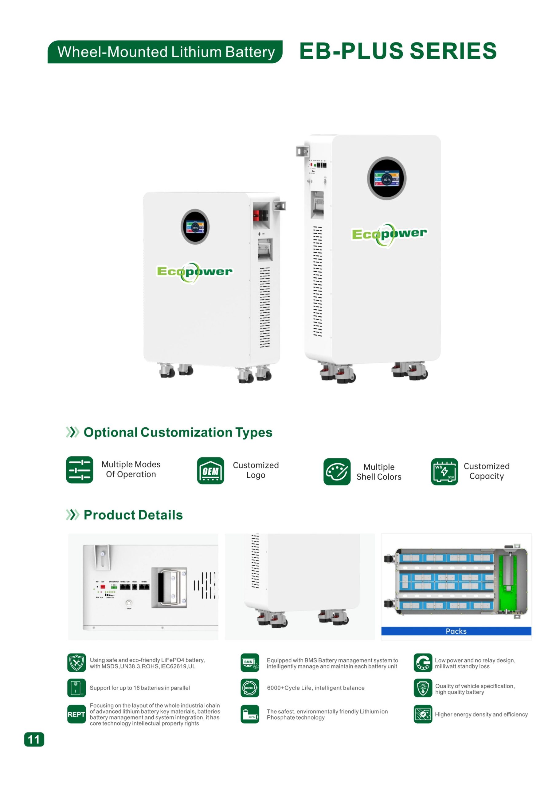 Pin Lithium Ecopower EB-Plus-51.2V-280Ah là giải pháp lưu trữ năng lượng chuyên nghiệp, được thiết kế đặc biệt cho các hệ thống năng lượng mặt trời và dự phòng quy mô lớn. Với công nghệ LiFePO4 và Smart BMS, sản phẩm này không chỉ cung cấp nguồn điện dồi dào mà còn đảm bảo độ tin cậy và an toàn tối đa.